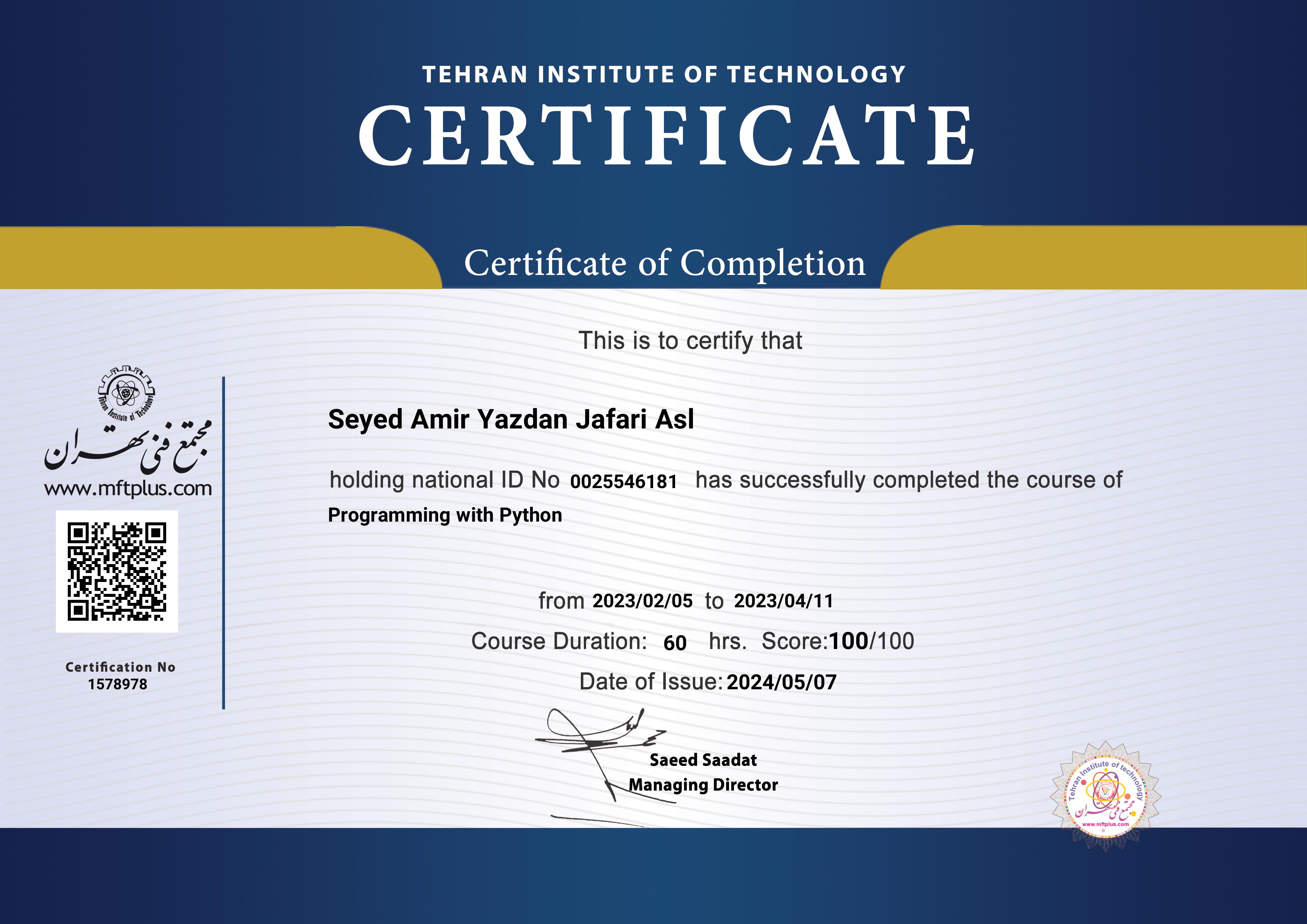 Gaining admission at Islamic Azad University NTB was competitive, and this opportunity has allowed me to deepen my knowledge, conduct academic research, and connect with the international programming community. Driven by passion and curiosity, I aspire to be more than just a programmer—I want to become a tech entrepreneur who launches innovative startups. Through my studies and research, I’m building the skills and vision to create impactful new ventures and contribute to the future of technology.